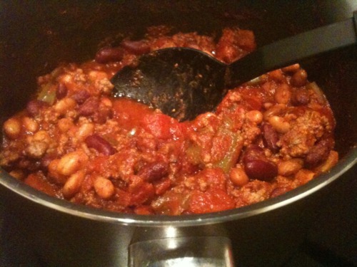 The purpose of this post however, was to talk about the chilli I made last night. In short, it was fantastic. I had never made chilli before, and when I was buying beans this weekend, I noticed a recipe on the side of a can of dark red kidney beans. It looked easy and the ingredients were all easily obtainable (some in that same aisle), so I decided to give it a try.